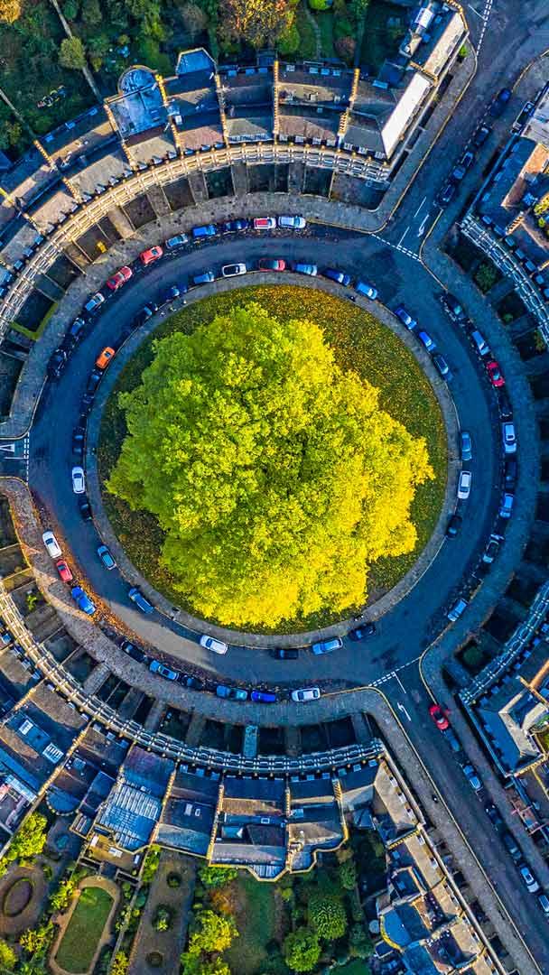 The Circus in Bath, Somerset, England, is an architectural masterpiece steeped in history and elegance. Designed by the renowned architect John Wood, the Elder, it stands as a remarkable example of Georgian architecture. This iconic circular space features crescent-shaped terraces, adorned with uniform facades and grand townhouses that exude a sense of symmetry and grace. The Circus was meticulously planned, with its central green space creating a focal point within the circle. Today, The Circus remains a cherished historical landmark and a testament to Bath"s cultural heritage. Visitors are captivated by its timeless charm, making it a popular destination for those who want to immerse themselves in the architectural marvels of yesteryears.