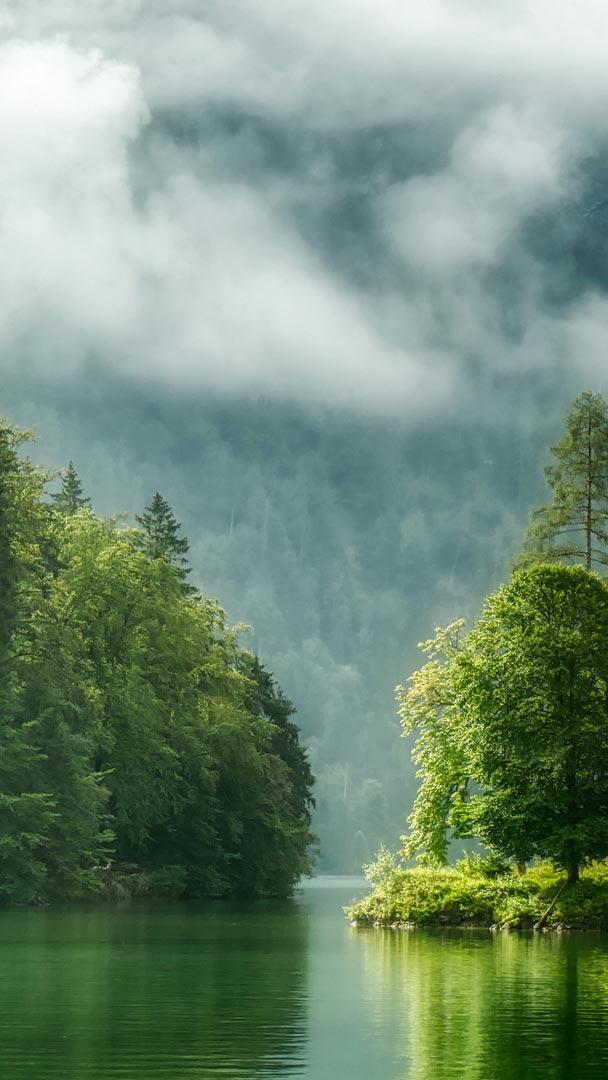 When mist drifts across Königssee Lake, located in Bavaria, Germany, in the early morning, the landscape feels almost timeless. The long, narrow mountain lake lies in south-eastern Bavaria, cradled between the steep rock faces of the Berchtesgaden Alps. Large parts of the lake lie within Berchtesgaden National Park, Germany"s only Alpine national park, where nature is largely allowed to develop without human interference.