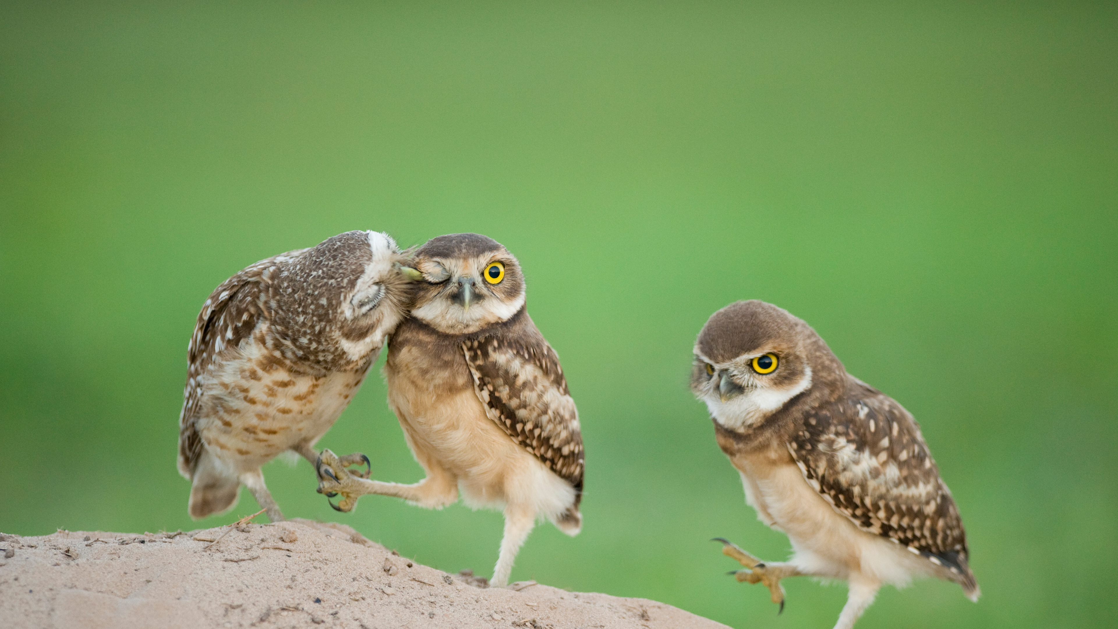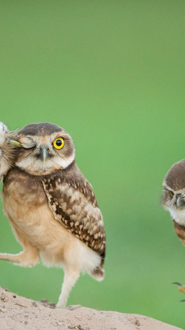Um dia extra especial Filhotes de coruja-buraqueira recém-nascidos, Pantanal (© Bence Mate/Minden)