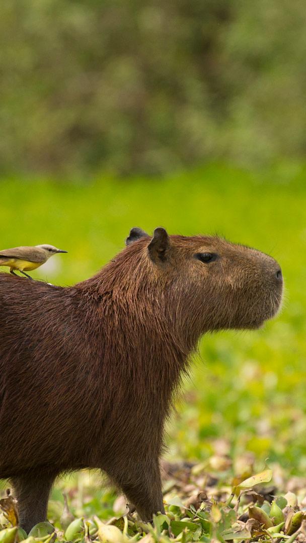 Vivendo em harmonia Capivara, o maior roedor do mundo, na margem de um rio no Pantanal (© Joe McDonald/Getty Images)