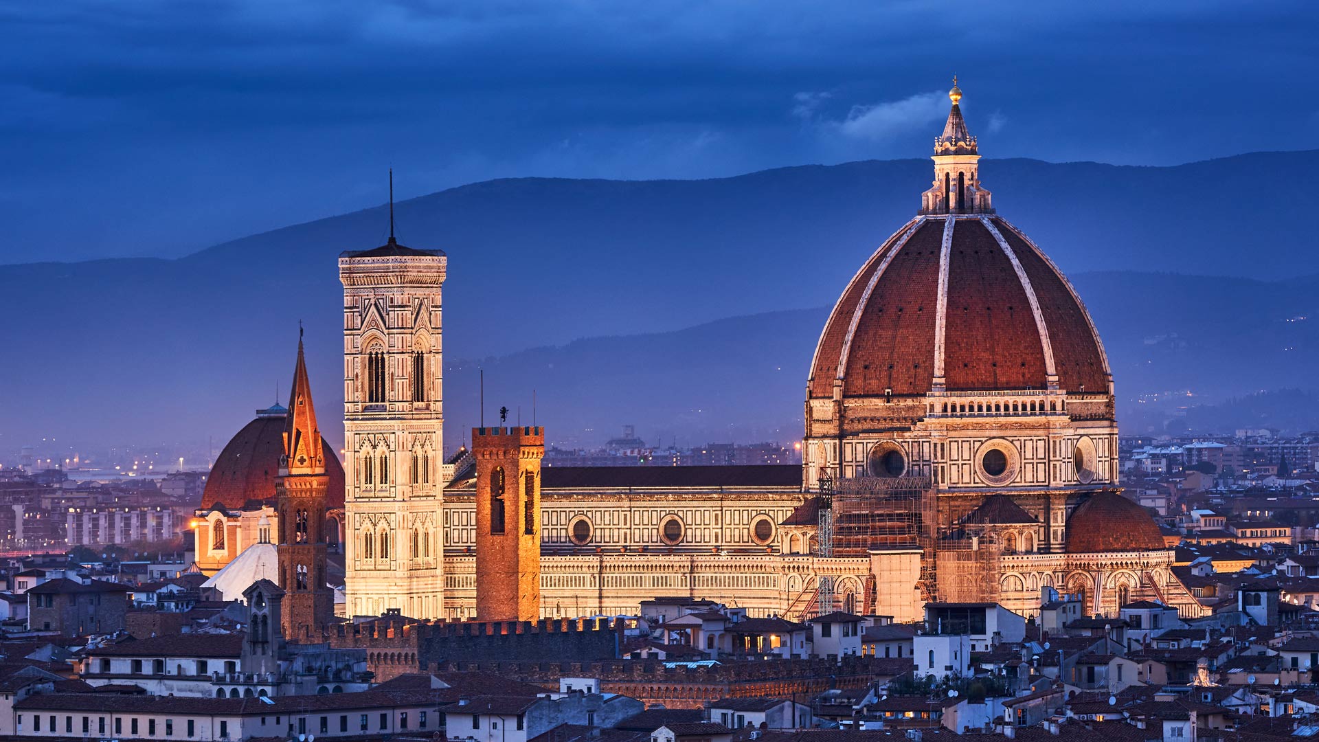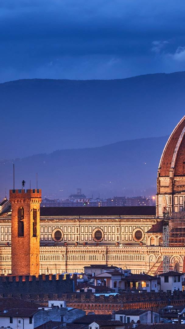 Colosso florentino! Catedral Santa Maria del Fiore ao anoitecer, Florença, Itália (© Elena Pueyo/Getty Images)