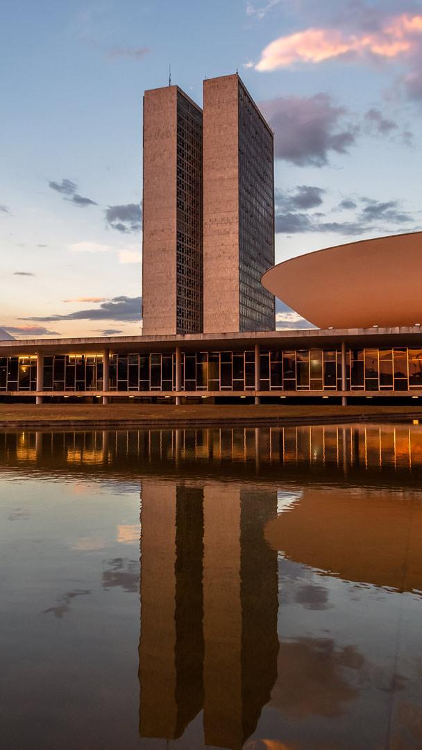O Brasil dos bastidores Congresso Nacional ao pôr do sol, Brasília, Distrito Federal (© Diego Grandi/Shutterstock)