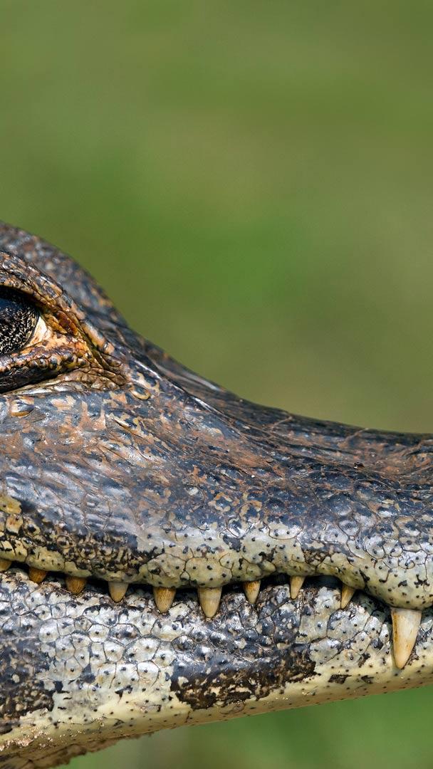 No coração do Pantanal Jacaré-do-pantanal com uma borboleta pousada em seu focinho, Pantanal (© Angelo Gandolfi/NPL)