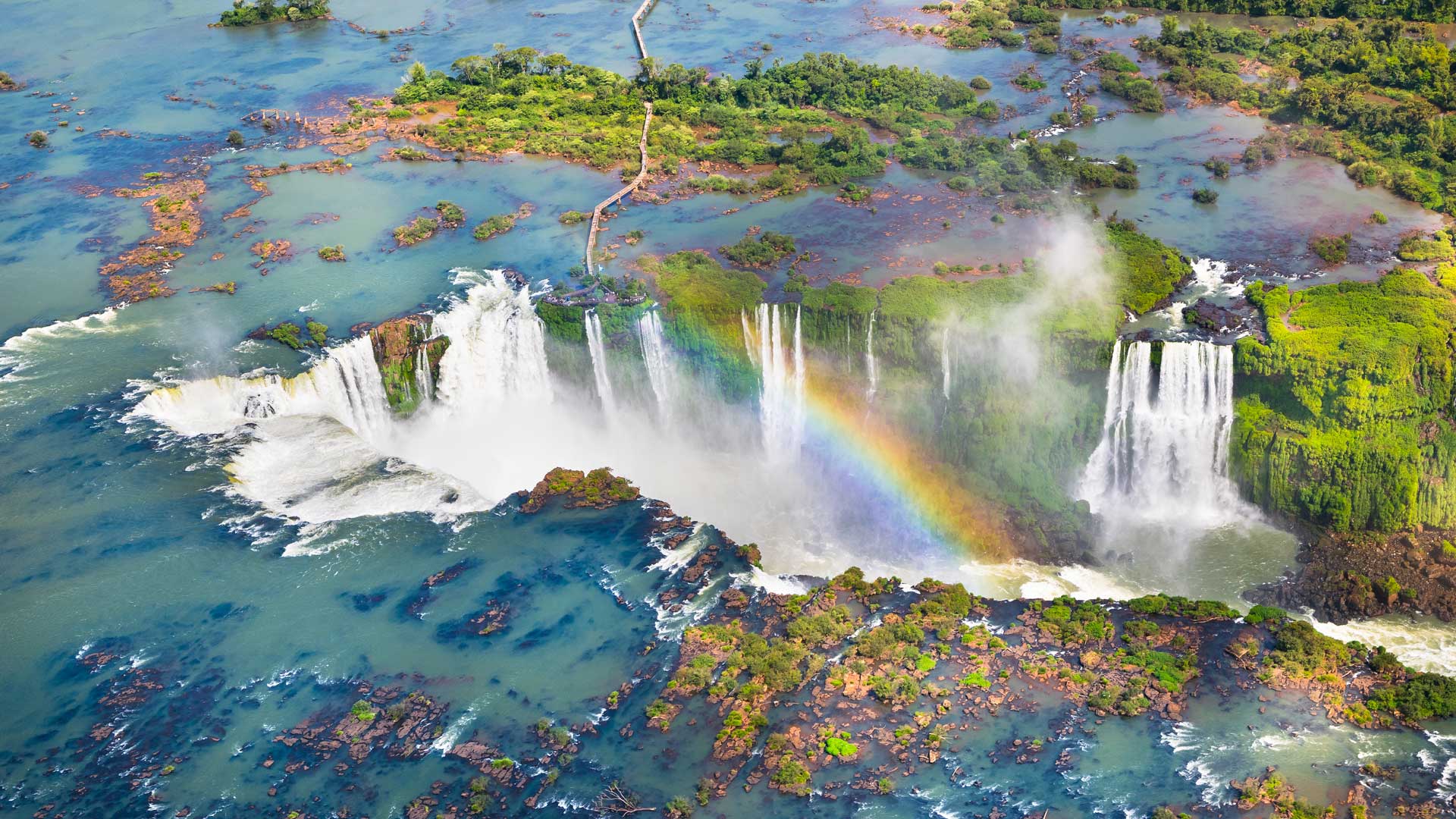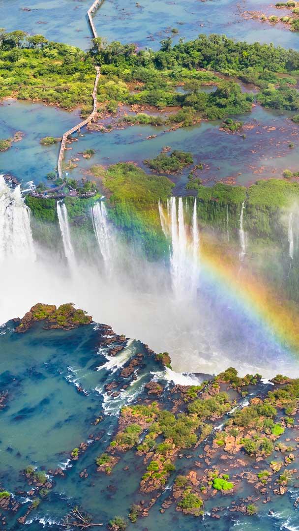 Na sinfonia das quedas Vista aérea das Cataratas do Iguaçu, Foz do Iguaçu, Paraná (© NidoHuebl/Getty Images)