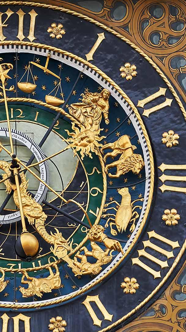 Mecânica celestial Relógio astronômico na Prefeitura de Ulm, Ulm, Alemanha (© Tomekbudujedomek/Getty Images)