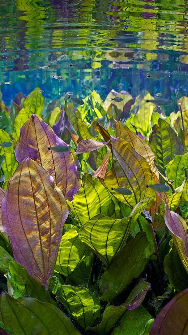 So fresh, so clean Underwater river scene with freshwater plants and tetra fish, Aquário Natural, Rio Baia Bonito, Mato Grosso do Sul, Brazil (© Michel Roggo/Minden Pictures)