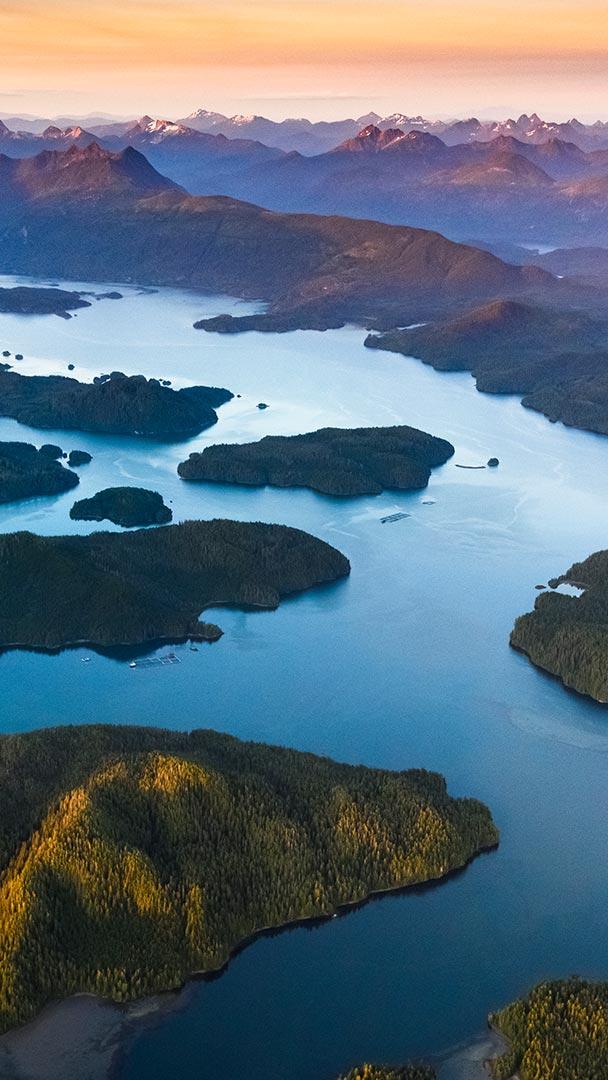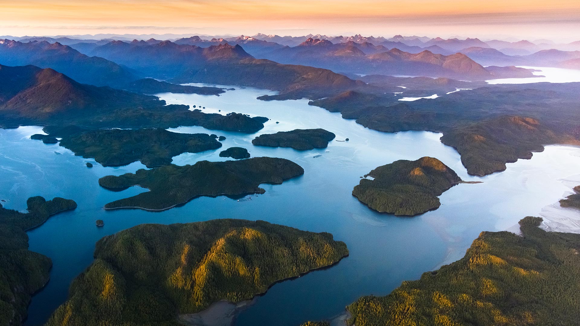 Rugged coasts and temperate rainforests Aerial view of Clayoquot Sound and the Pacific Rim National Park Reserve in British Columbia (© Yuri Choufour/Danita Delimont)