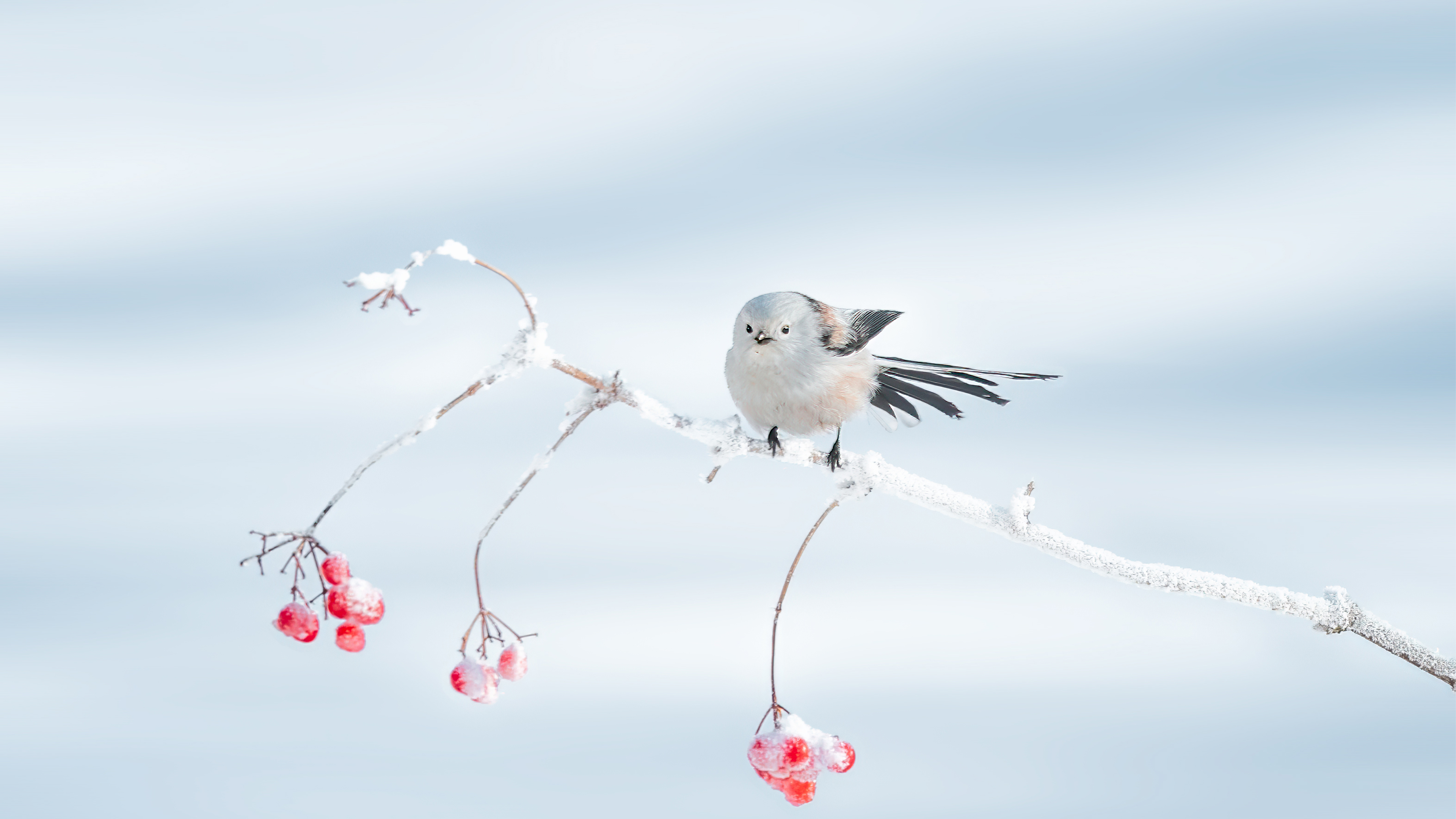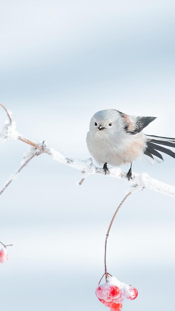 冬季里的呆萌小可爱 栖息在树枝上的北长尾山雀,大庆市,中国黑龙江省 (© Visual China Group/Getty Images)
