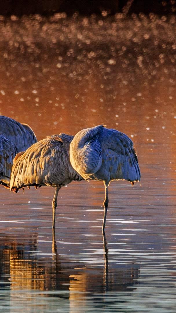 谁在打盹儿? 博斯克·德尔·阿帕奇国家野生动物保护区的沙丘鹤,美国新墨西哥州 (© Jay Goodrich/Tandem Stills + Motion)