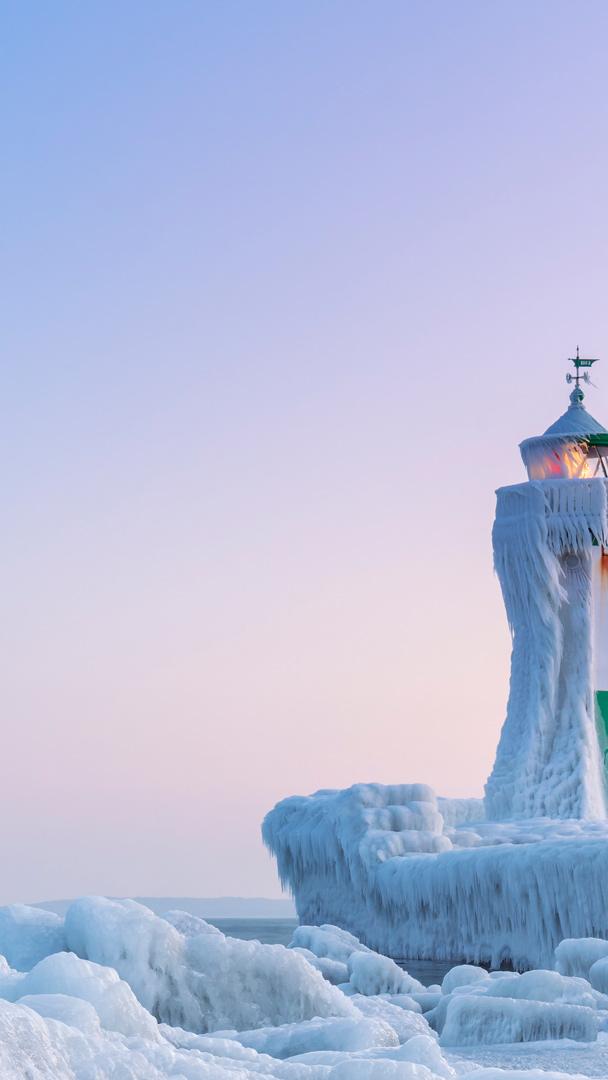 发光的雪塔 吕根岛的萨斯尼茨灯塔,德国 (© Christian Back/eStock)