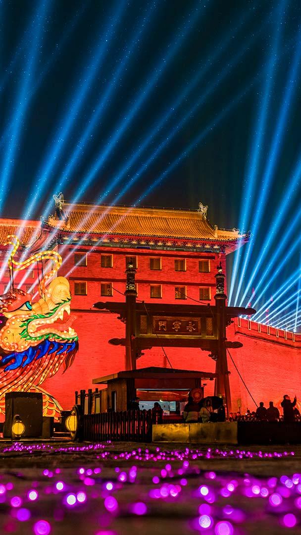 准备好庆祝了吗? 灯光秀点亮夜幕中的西安城墙,中国春节 (© Eastimages/Getty Images)