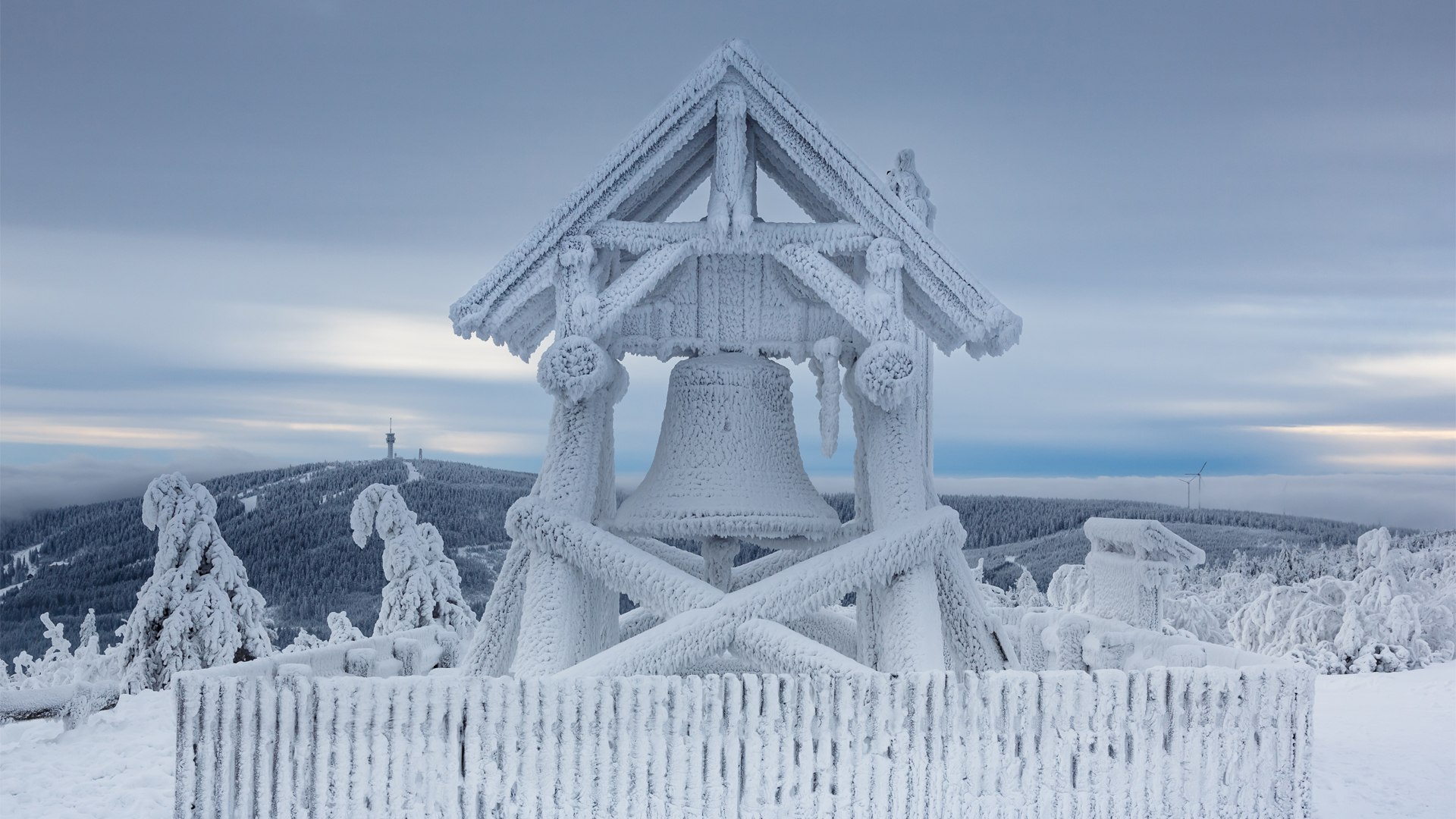 Eine Glocke für den Frieden Friedensglocke auf dem Gipfel des Fichtelbergs, Sachsen (© Jan Drahokoupil/Getty Images)