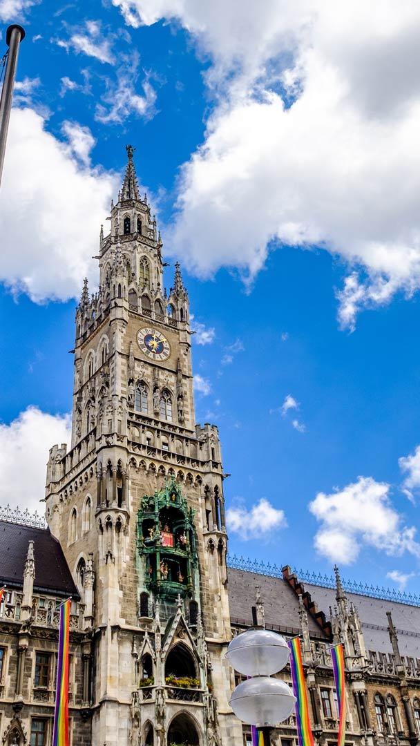 Pride in Minga Regenbogenfahnen am Münchner Rathaus (© FooTToo/iStock/Getty Images Plus)