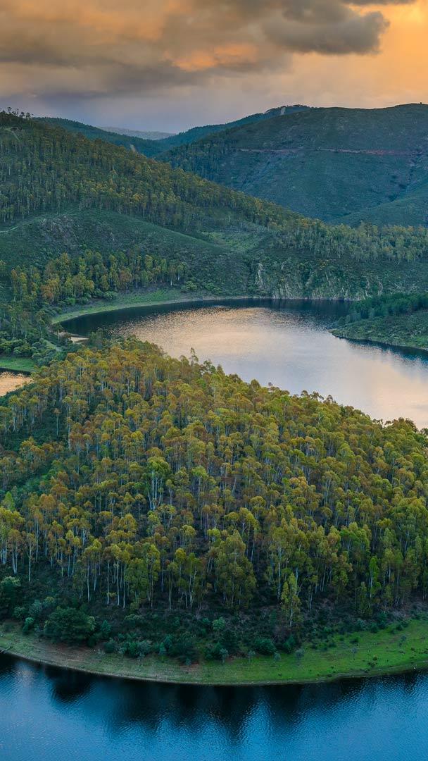 Este sorprendente meandro situado en Melero, Extremadura, parece sacado de un cuento de hadas. Es muy probable que, si piensas en Extremadura, se te venga a la mente sus extensas áreas de dehesas, bosques de encimas y característicos paisajes de alcornoques. Sin embargo, el meandro del Melero está ubicado en el curso del río Alagón en Cáceres.
