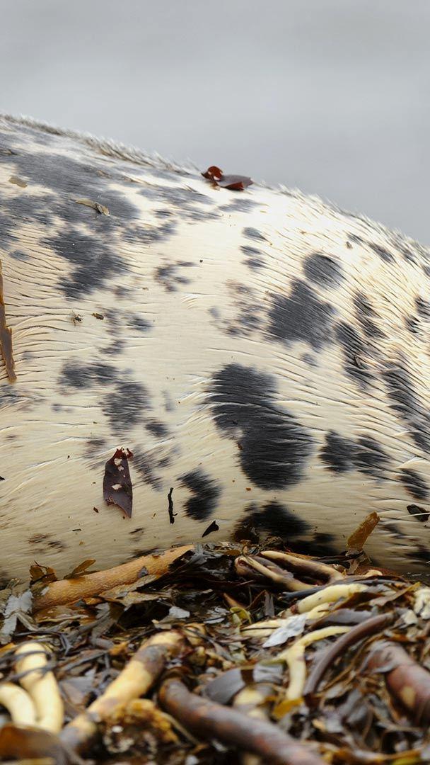 Allongé sur une plage battue par les vents d’Écosse, le phoque gris semble immobile, figé dans le paysage. Sa robe tachetée se confond avec les rochers humides, au rythme du va-et-vient de la mer. Cet animal emblématique des côtes nord-atlantiques incarne un calme ancestral, forgé par le froid, l’iode et le temps.