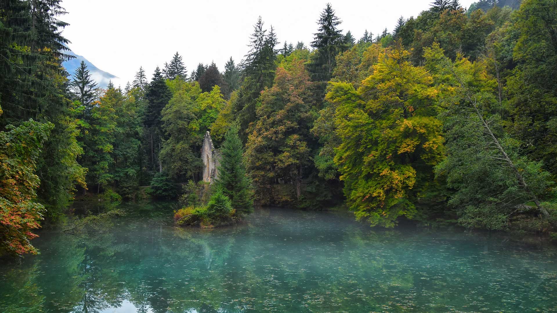 Une idée anglaise Le lac à l’Anglais et les fausses ruines d’une chapelle à Chamonix (© Aishe/Shutterstock)