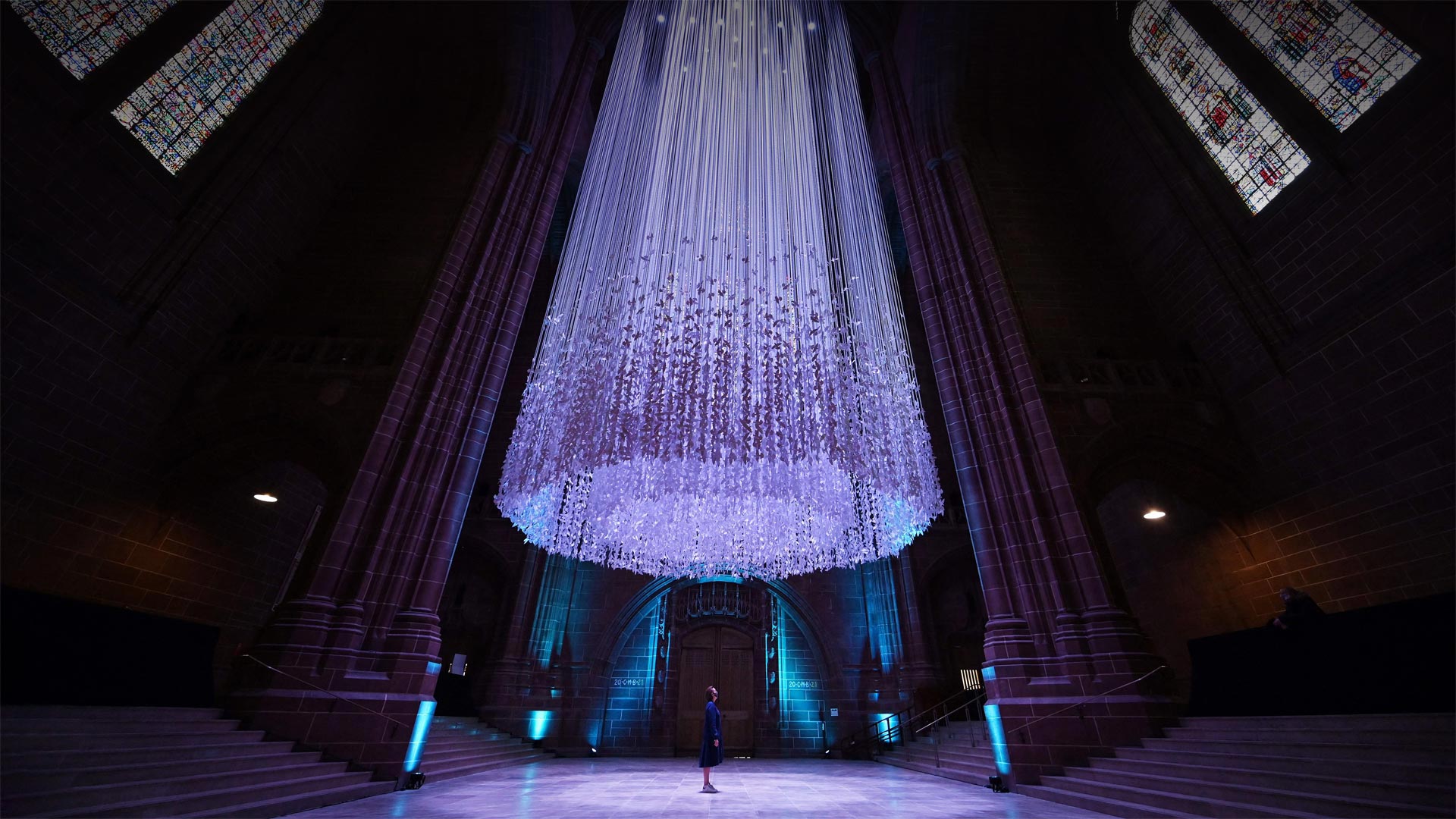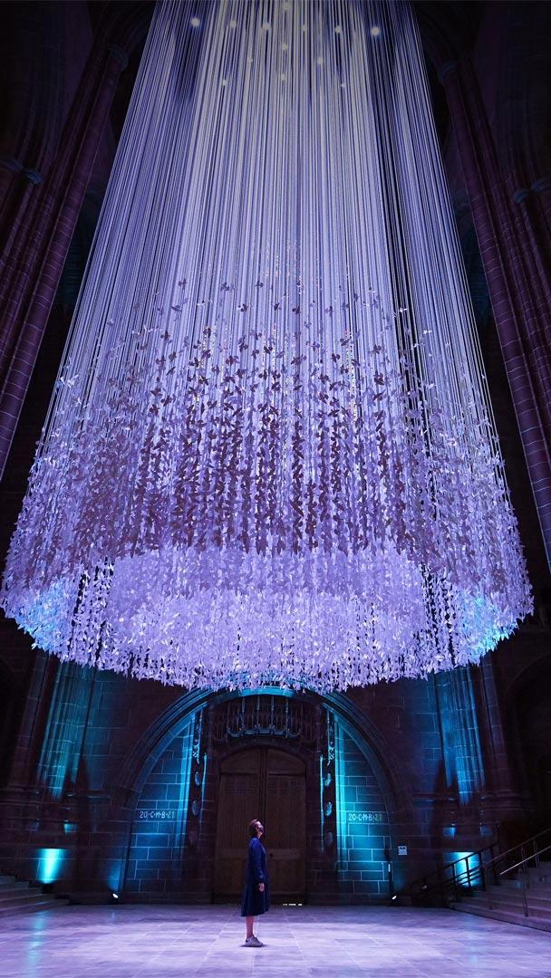 Des colombes pour la paix L’installation Peace Doves’ par l’artiste Peter Walker, Cathédrale de Liverpool, Angleterre (© PAUL ELLIS/AFP via Getty Images)
