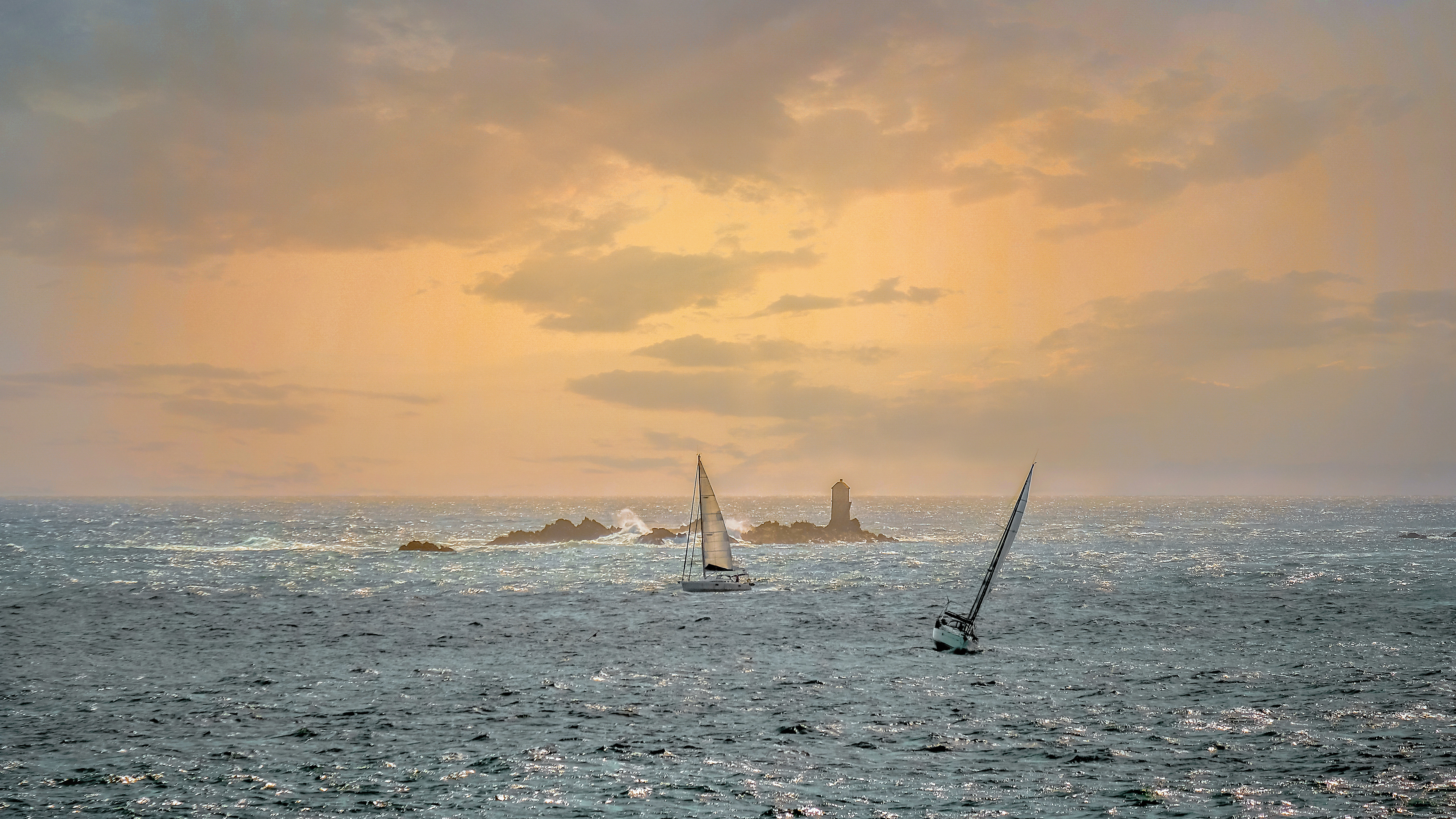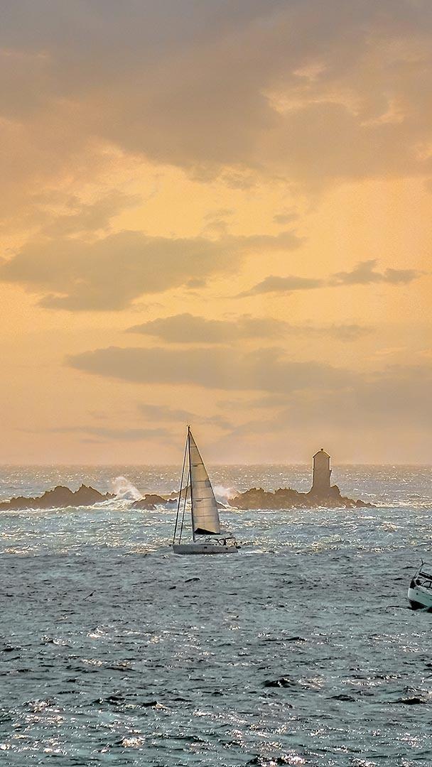 La Bretagne, ça nous gagne Voiliers au crépuscule devant un phare au large de Roscoff, Finistère, Bretagne (© Cristina Granena/iStock/Getty Images Plus)