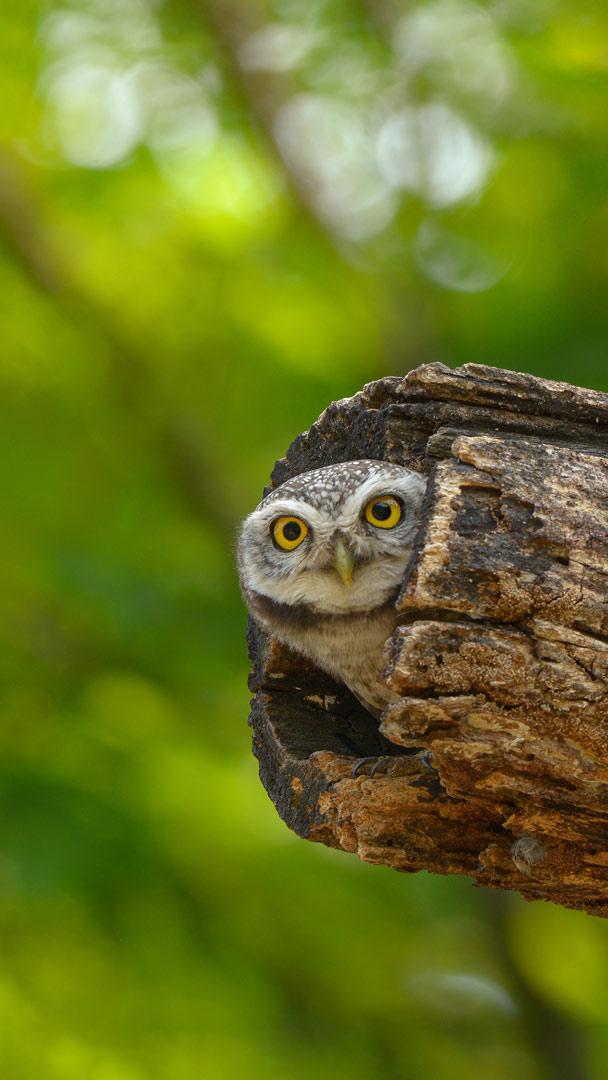 Vous pensez pouvoir soutenir le regard perçant d"une chevêche brame ? Reconnaissables à leurs yeux jaune vif, ces rapaces nocturnes sont souvent observés en plein jour lorsqu’ils sont harcelés par de petits oiseaux. Lorsqu’ils sont découverts, ils fixent les intrus, hochent la tête et émettent un cri strident, parfois comparé à un rire ou un gloussement.