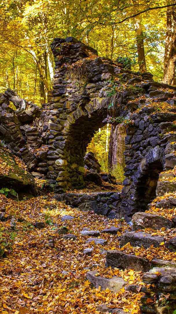 Madame Sherri Forest in Chesterfield, New Hampshire, United States, is a captivating destination steeped in history and natural beauty. It was once the site of an extravagant house built in the 1930s by Madame Antoinette Sherri, a flamboyant 1920s costume designer known for her lavish parties. Madame Sherri"s dramatic arrivals in town, often in a chauffeur-driven Packard, draped in furs, became the talk of the locals. As her fortune declined, her "castle" fell into disrepair and was vandalised. In 1959, she returned to find her property in ruins and never came back. A fire destroyed the house in 1963, leaving behind only the stone foundation, an iconic staircase and a large fireplace leading to a lone chimney.
