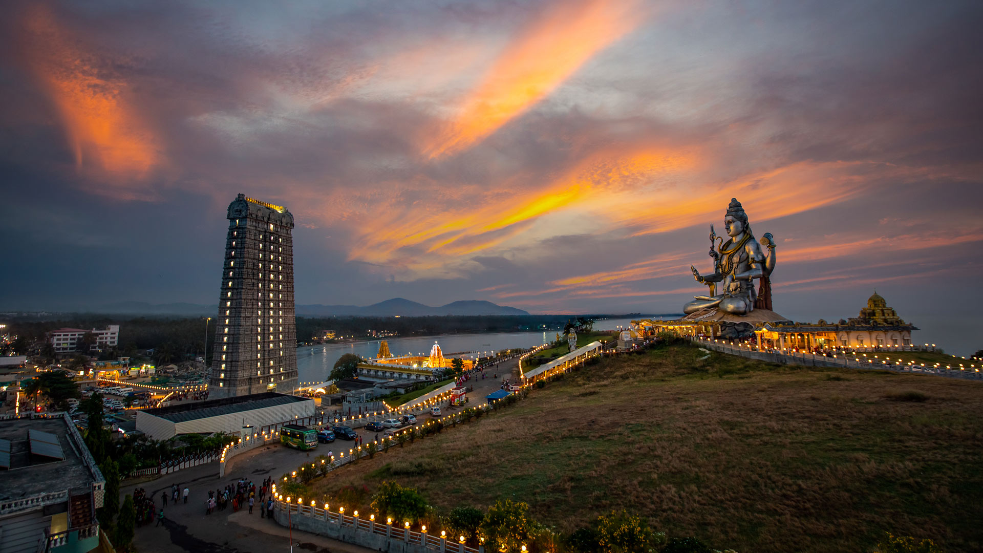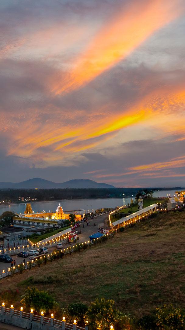 Welcome to the coastal town of Murdeshwar in Karnataka"s North Canara district, right along the Laccadive Sea. The town"s star attraction is the magnificent Murudeshwara temple, perched atop Kanduka Hill, seen in today"s image. Built in 2008, this temple is constructed in the classic Dravidian architectural style and features Chalukya and Kadamba sculptures. It houses a lift that gives visitors a breathtaking view of the towering 37-metre Shiva statue, which is the third tallest in the world. The temple is dedicated to Lord Shiva, and the primary deity here, Sri Mridesa Linga, also known as Murudeshwara, is believed to be a fragment of the original Atma Linga. It rests about 60 centimetres below the ground. Flanked by two life-sized concrete elephants, the temple complex, including the impressive 20-storey, over 60-metre-tall Raja Gopura, is among the tallest in the region—truly a sight to behold!
