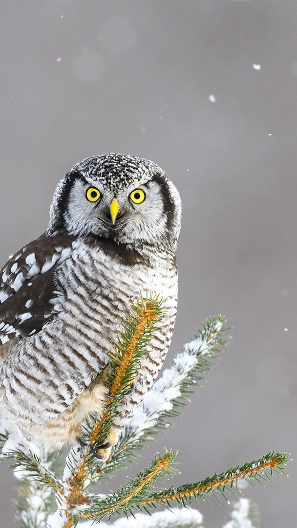 Featured here is a fascinating species: the northern hawk-owl. This medium-sized owl is found in the boreal forests of North America and Europe. Active only during the day, it has exceptional hearing and can plunge into the snow to capture rodents. With its long, tapered tail and a small head resembling a hawk, the northern hawk-owl is a striking sight. These owls don"t migrate, so they can be spotted year-round. However, in winter they may move south from Canada into the northern United States to find food when it"s scarce in their regular territory.