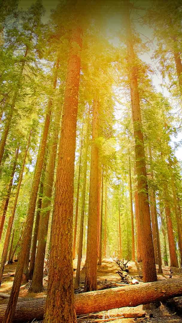 Warm light through an ancient forest Mariposa Grove in Yosemite National Park, California (© Orbon Alija/Getty Images)