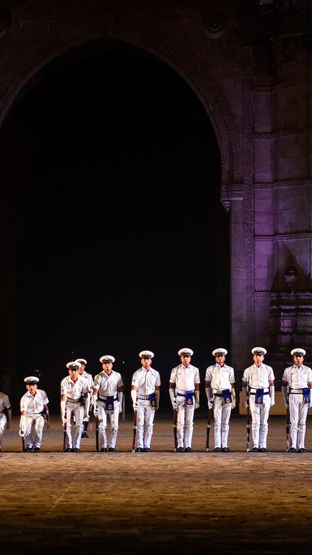 Honouring the valiant heroes Indian Navy sailors doing rehearsal for Navy Day celebrations in Mumbai, India (© Punit Paranjpe/AFP via Getty Images)
