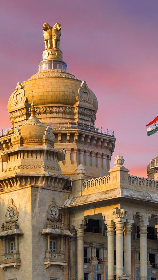 The pillar of democracy Sunset at Vidhana Soudha (State Legislature Building) in Bangalore, India (© Artie Photography/Getty Images)