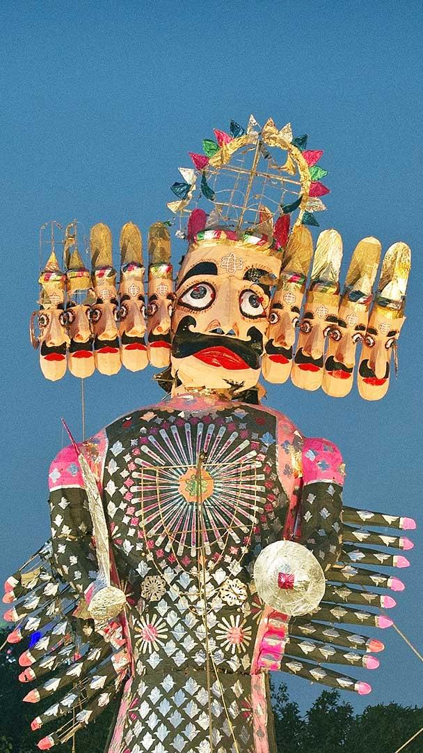 The victory of good over evil Effigies of Ravana, Meghanada, and Kumbhakarna in New Delhi, India (© Prakash Singh/Staff/AFP/Getty Images)