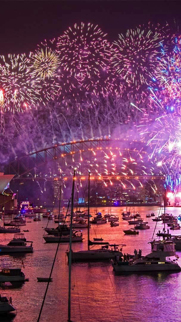 Buon anno dal mondo di sotto Fuochi dartificio di Capodanno, Sydney Harbour Bridge, Australia (© Wendell Teodoro/Getty Images)