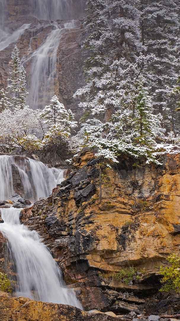 Cascate sulle montagne rocciose Cascate Tangle Creek Parco Nazionale di Jasper, Alberta, Canada (© Jeff Foott/Minden Pictures)