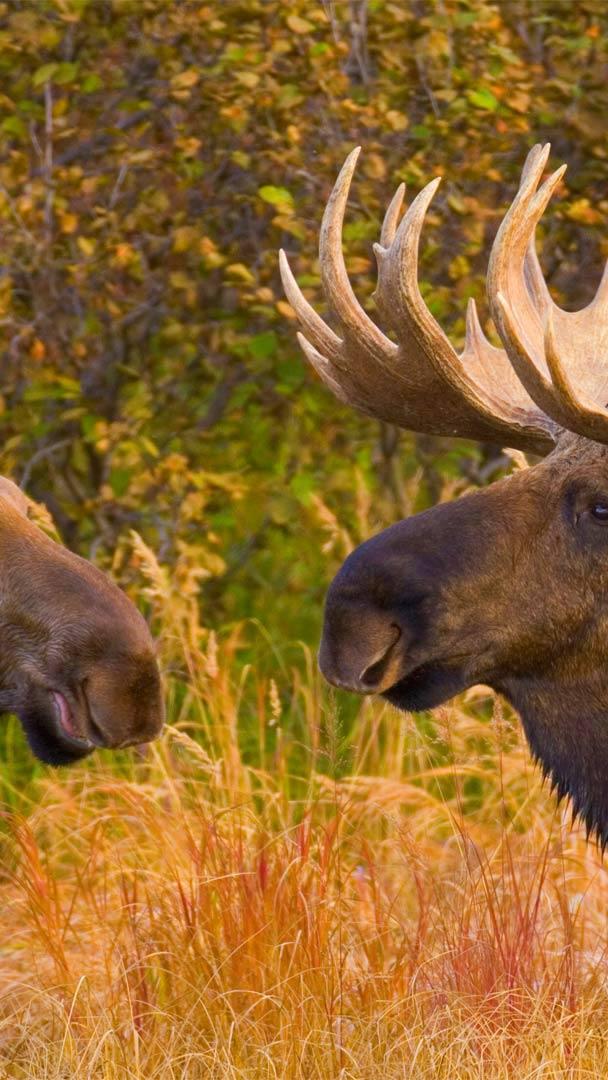 Il più grande cervide esistente Alce maschio e alce femmina nel Parco Nazionale di Denali, Alaska, USA (© Yva Momatiuk and John Eastcott/Minden Pictures)