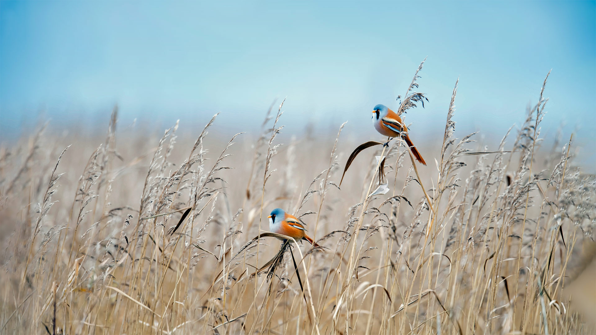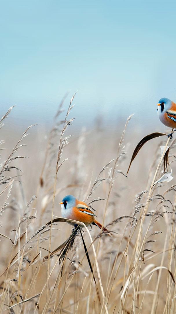 Gli uccelli con le basette Due basettini nel Flevoland, Paesi Bassi (© Gert-Jan IJzerman/Minden Pictures)
