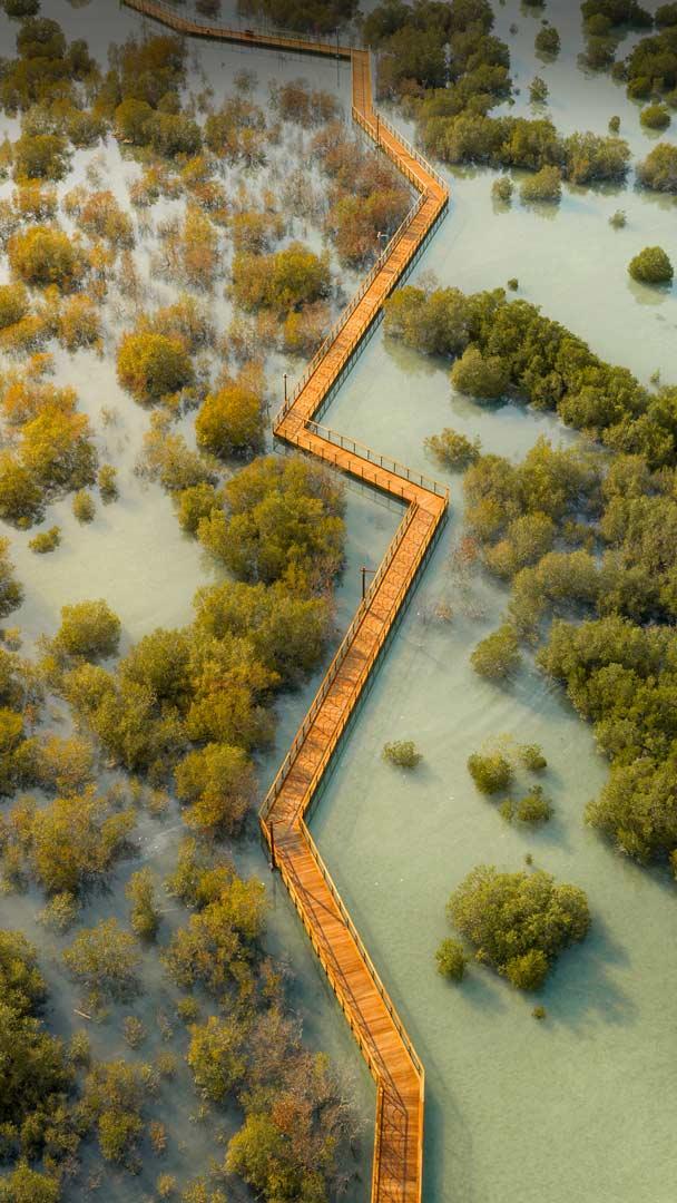 Salutate queste alofite! Parco delle mangrovie di Jubail ad Abu Dhabi, Emirati Arabi Uniti (© Amazing Aerial Premium/Shutterstock)