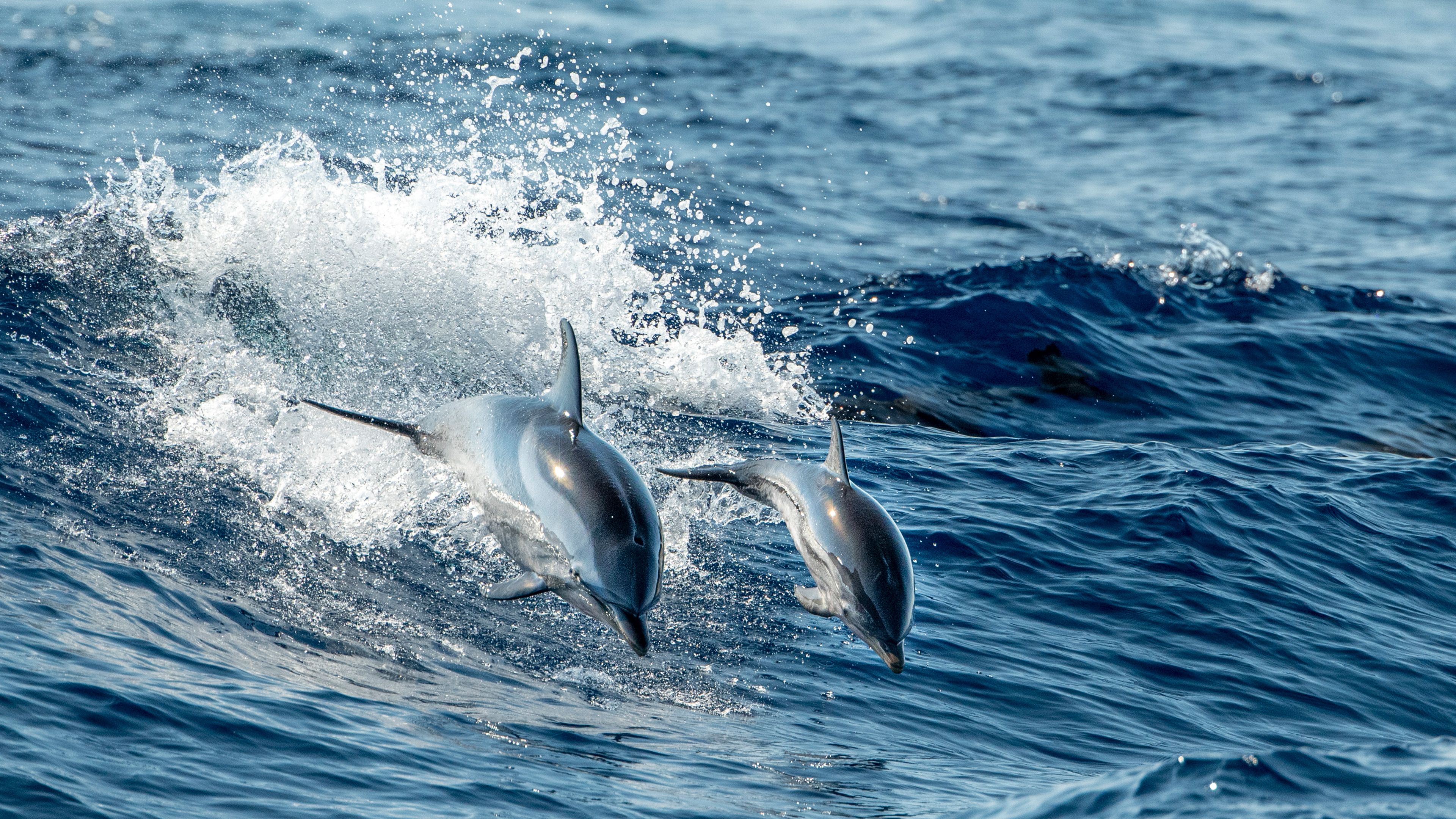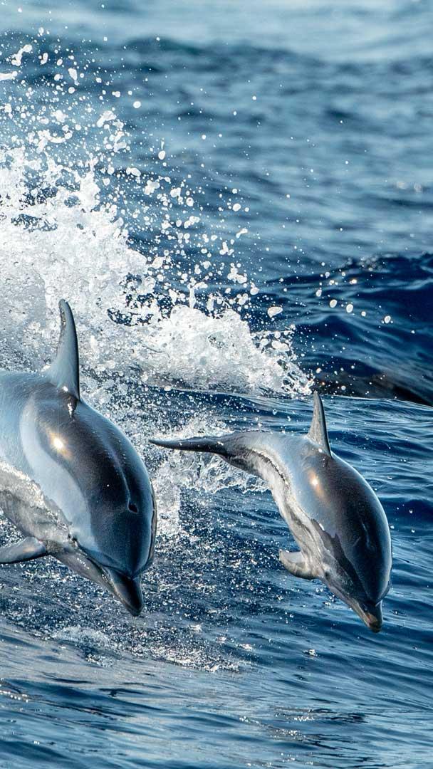 Festeggiamo le mamme di tutto il mondo! Vista dallalto di delfini che nuotano nel mare, Genova, Italia (© Andrea Izzotti/500px/Getty Images)