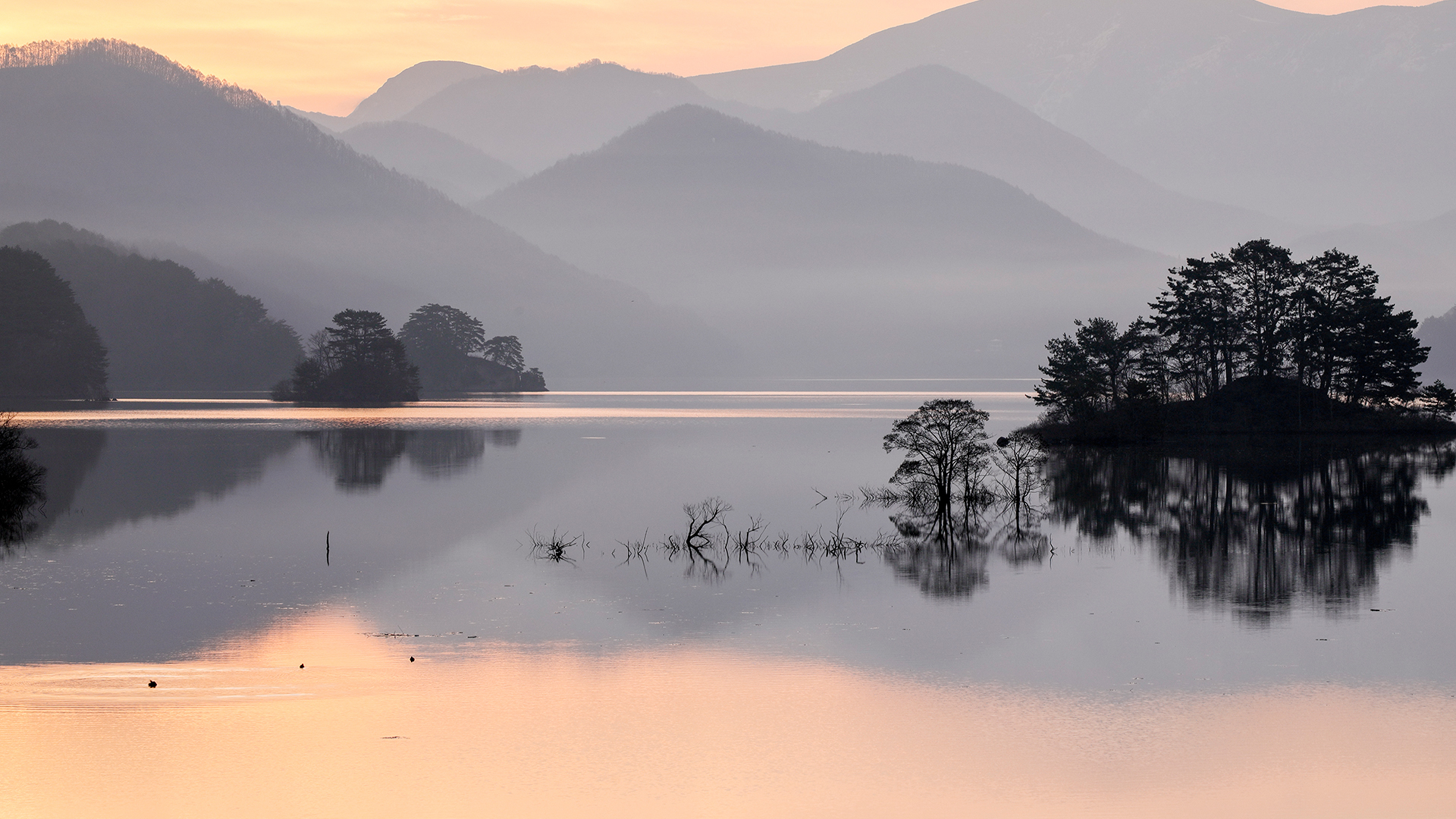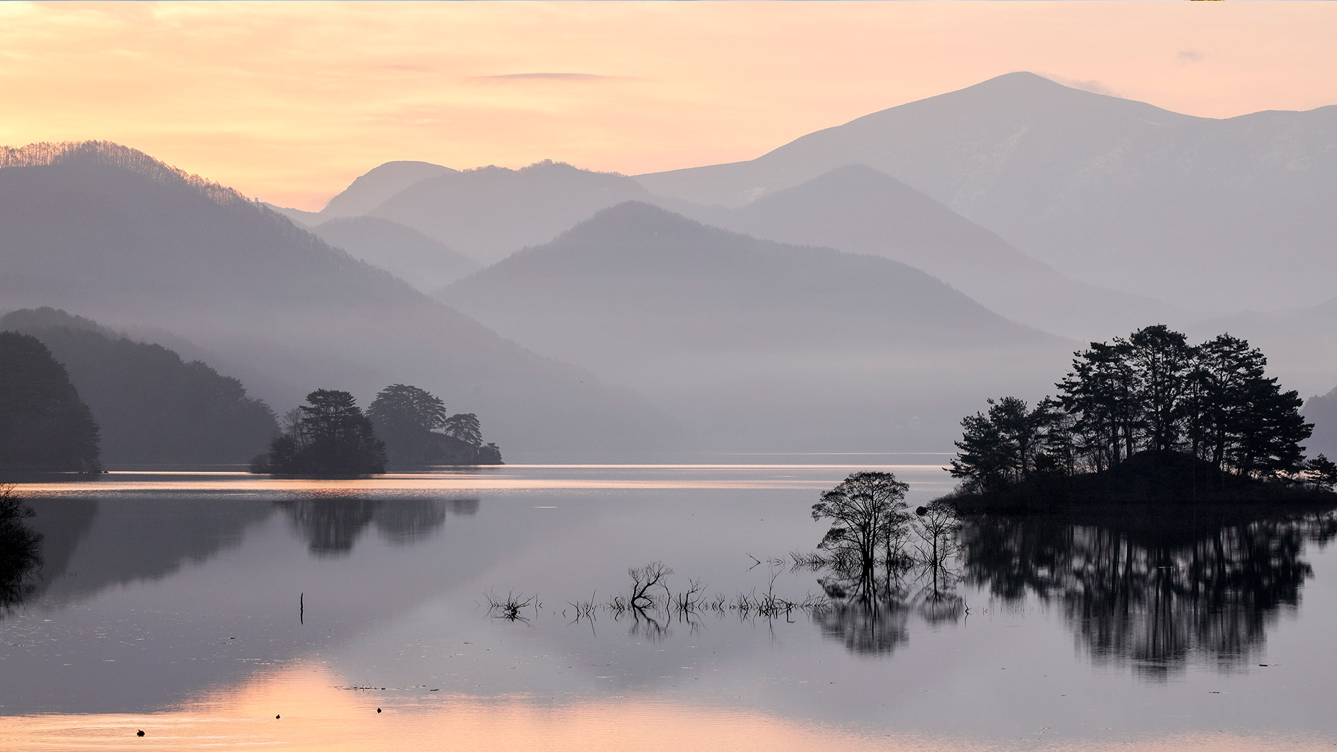 東日本大震災から 12 年 秋元湖の朝, 福島 (© I am happy taking photographs./Getty Images)