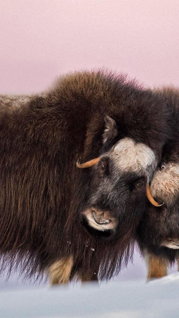 ジャコウウシの母と子 ジャコウウシの母と子, ノルウェー (© Robert Haasmann/Minden Pictures)
