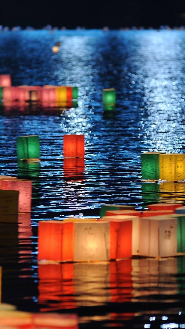 今日は広島平和記念日 原爆ドーム前元安川のとうろう流し, 広島県 広島市 (© Anadolu Agency/Getty Images)