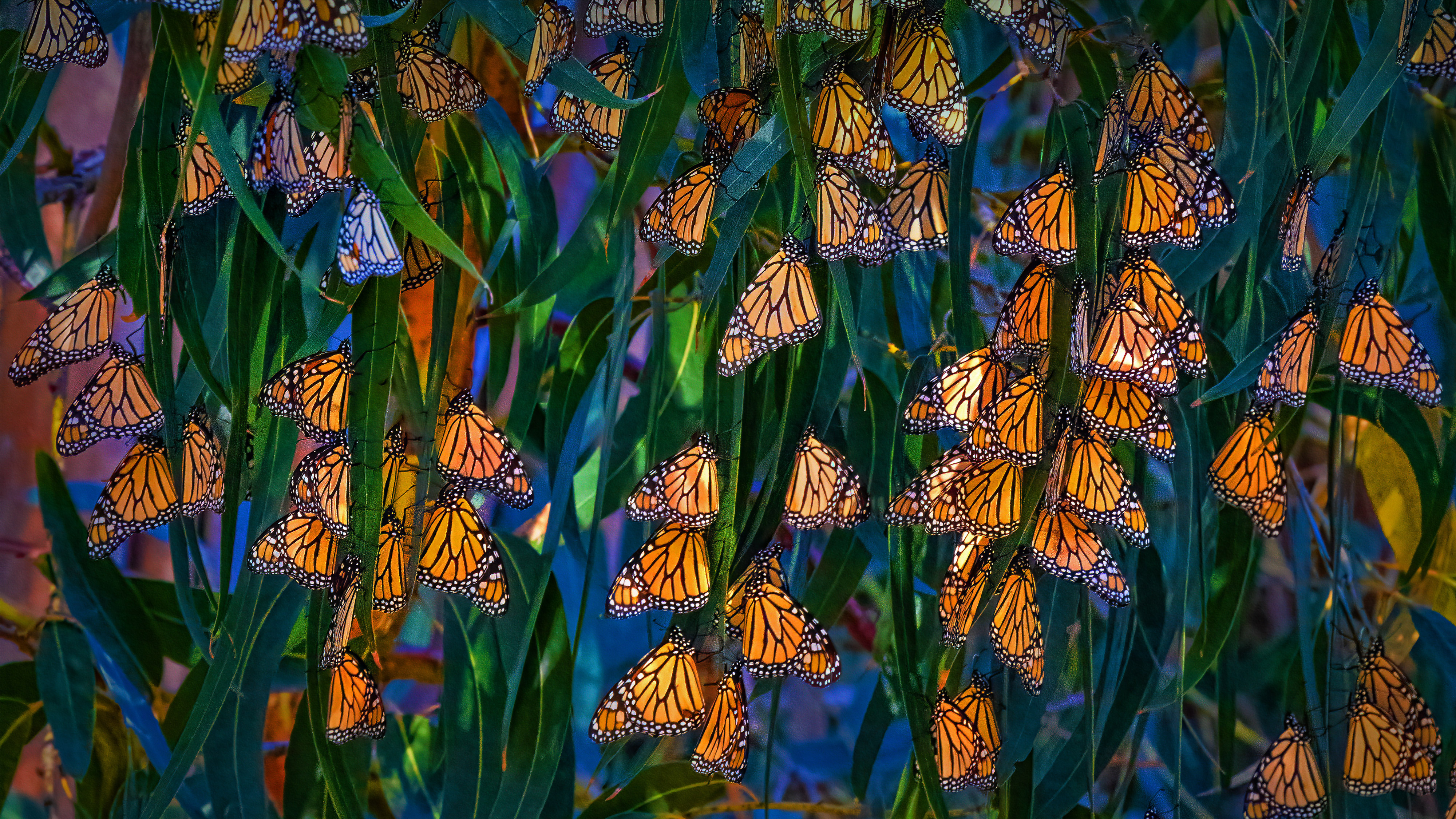 What are these colorful insects? Monarch butterflies at Pismo Beach, California, USA (© Mimi Ditchie/Getty Images)