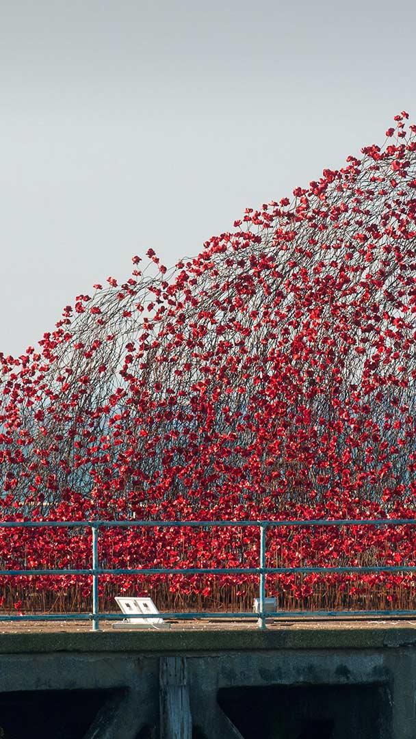 A wave of remembrance Poppies:Wave on Barge Pier, Shoeburyness, Southend-on-Sea, Essex (© Ben Rector/Alamy)