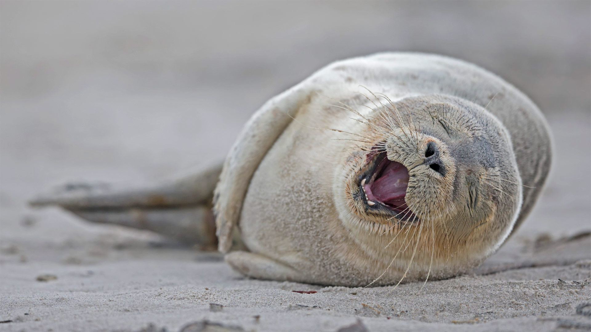 This baby harbor seal is happily ensconced on a beach on the German island of Düne in the North Sea archipelago of Heligoland. Throngs of seal watchers come here every May and June to watch these cute pups spend their first few weeks of life lolling about the beach.