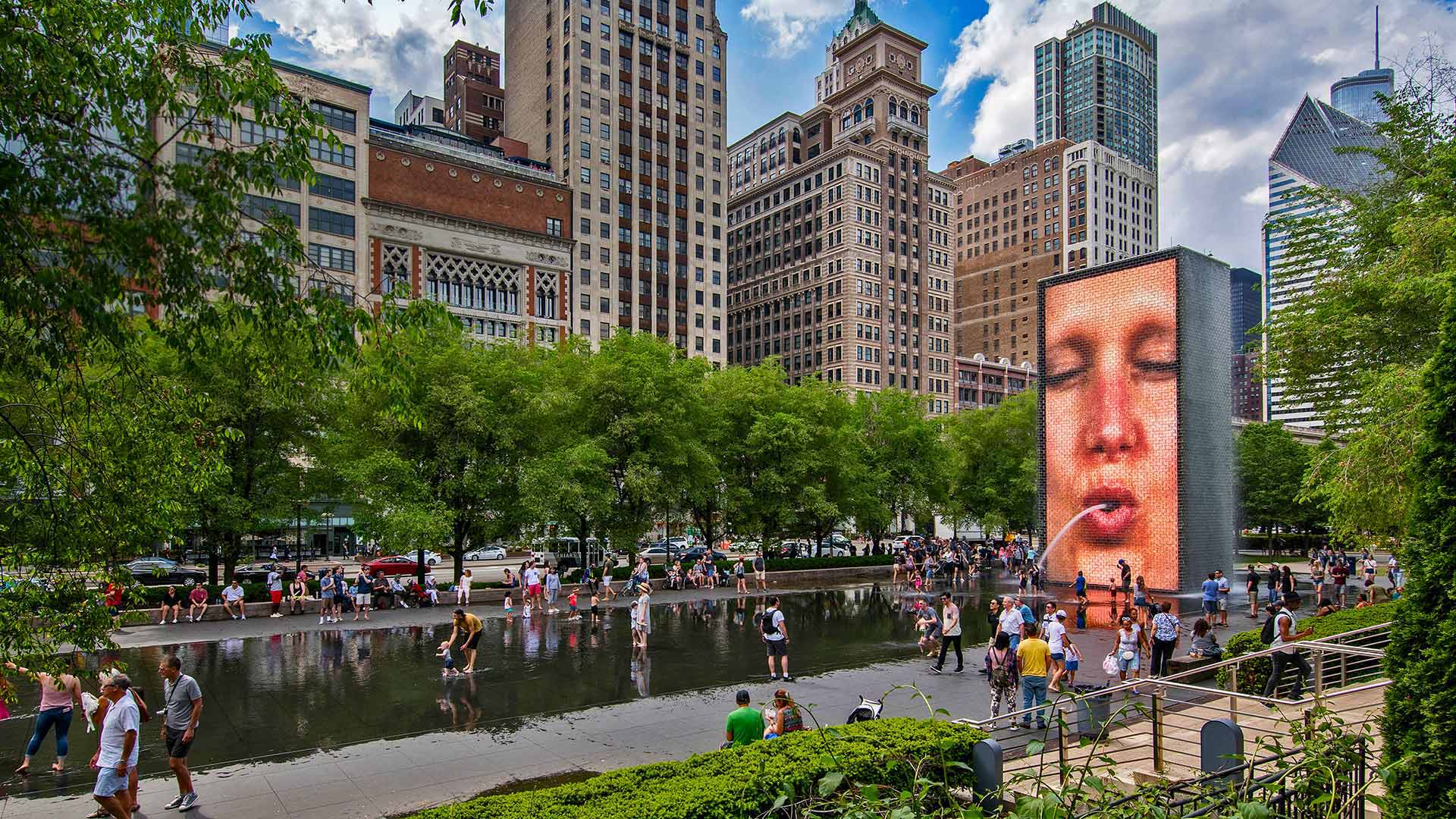 Crown Fountain by Jume Plensa at Millennium Park in Chicago © imageBROKER/Alamy