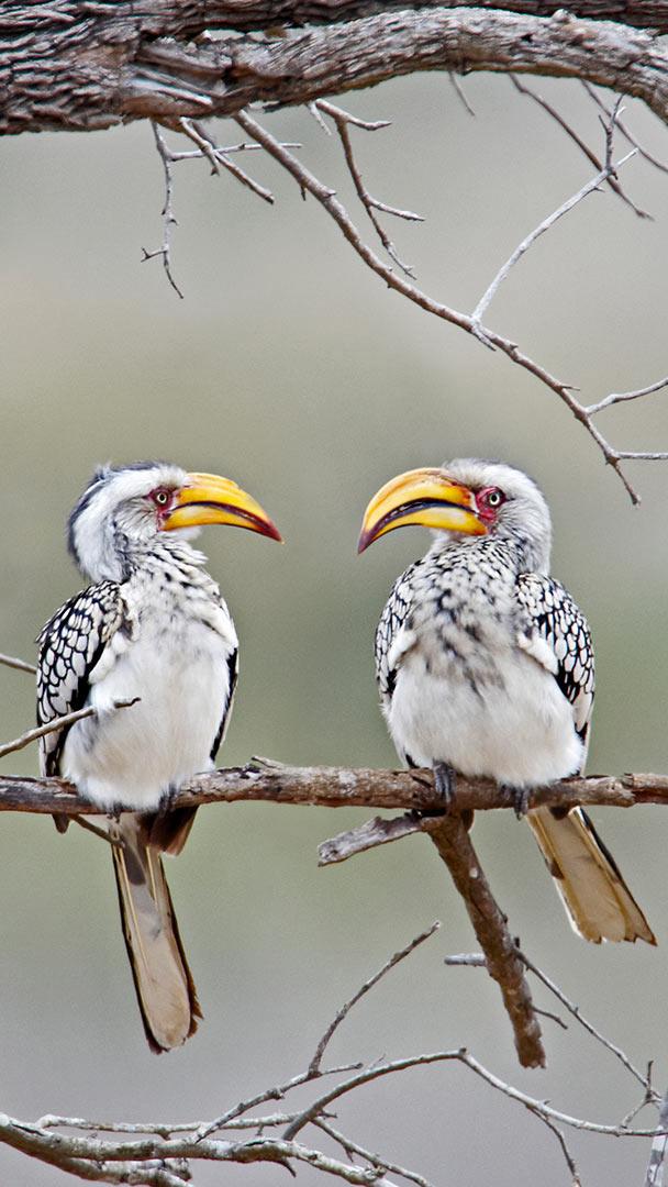 Southern yellow-billed hornbills live in the dry savannas of southern Africa. These two were photographed in South Africa"s Kruger National Park, one of the largest nature preserves on the continent. While hornbills tend to live and hunt alone, they do mate for life, maintaining a monogamous relationship year after year. And with a lifespan of 20 years in captivity, it"s entirely possible that there are some yellow-billed hornbill grandparents out there. Why do we mention that? Because we"re celebrating National Grandparents Day in the US today!