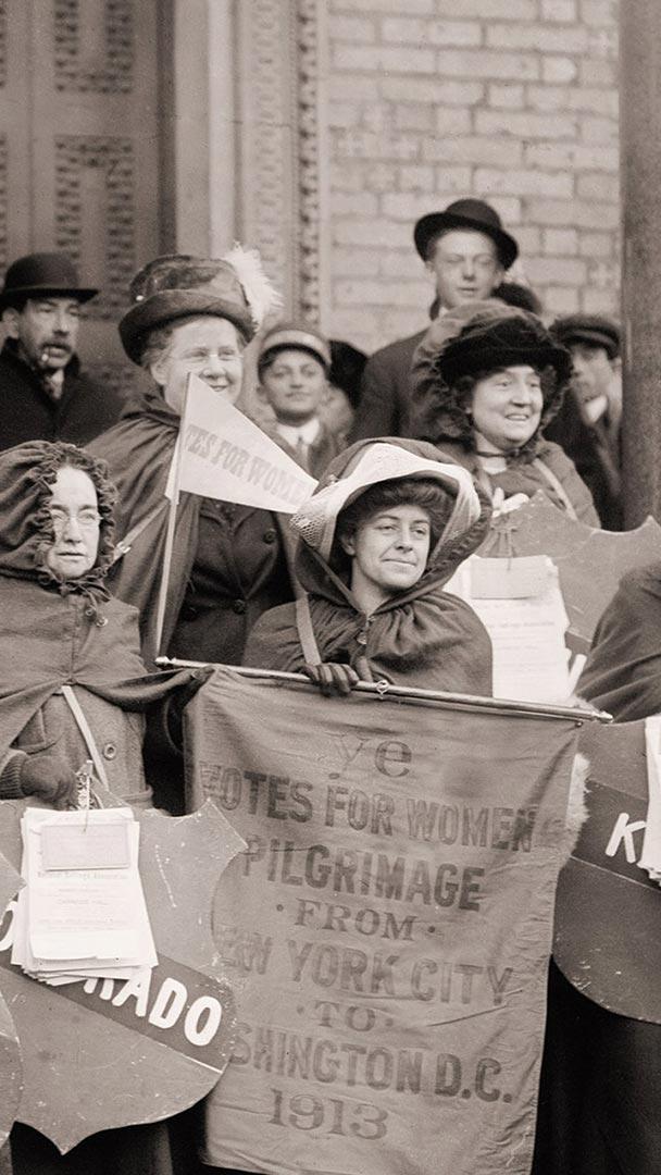 This historical photo commemorates a group of women who came to Washington, DC, to march alongside thousands in the Woman Suffrage Procession on March 3, 1913. Organizers scheduled the protest on the day before President Woodrow Wilson"s inauguration to draw maximum publicity to their cause—voting rights for women. But it would be another eight years before American women would finally be guaranteed the vote. That came on August 18, 1920, with the ratification of the 19th Amendment to the Constitution, after a century of protest and activism.