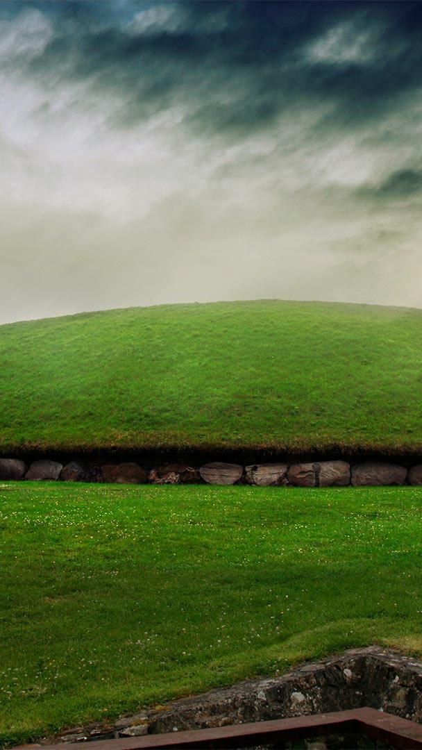 For St. Patrick"s Day, we"re featuring an image of the Knowth passage grave, part of Brú na Bóinne, or the Boyne Valley tombs, about an hour"s drive north of Dublin. In addition to Knowth, this UNESCO World Heritage site is home to the Newgrange and Dowth passage graves, henges, standing stones, and a significant portion of Western Europe"s megalithic art. Knowth, the largest passage grave in the complex, is a 40-foot-high mound with a diameter of 220 feet; two east-west passages run under it that lead to separate burial chambers. The structures predate St. Patrick by nearly 4,000 years, and their original purpose is unclear—but on this day dedicated to celebrating all things Irish, they show off the engineering capabilities of the area"s ancient population as well as the natural green beauty of the Irish countryside.