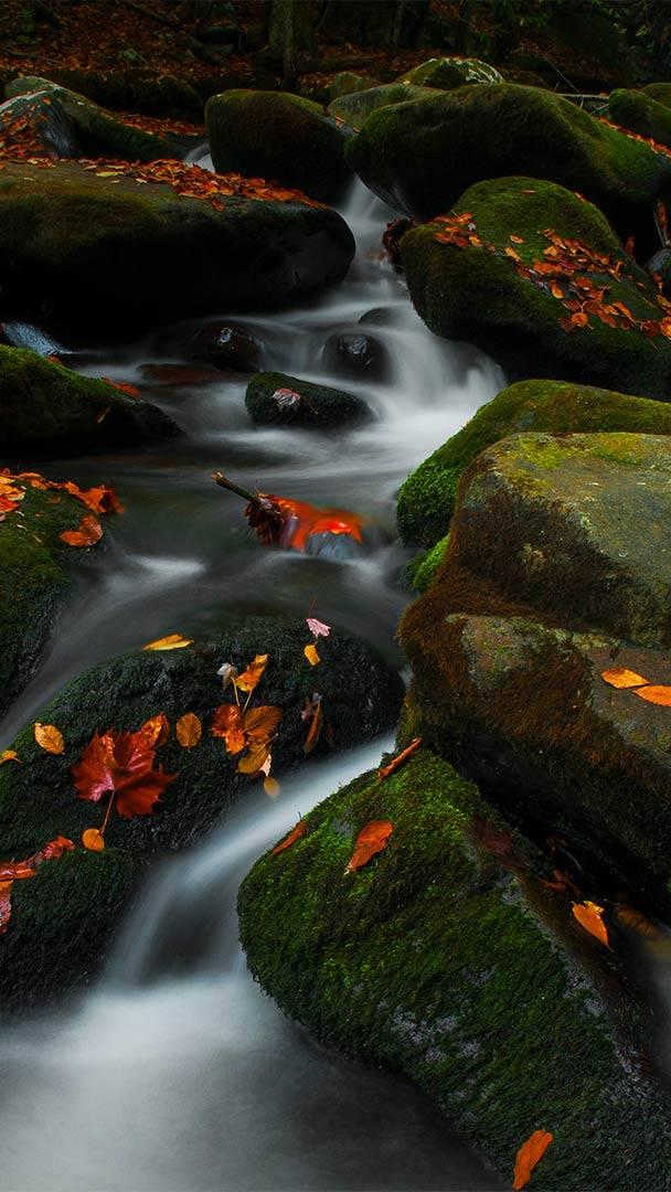 Although it might not look like it in this image of a tranquil fall day, Roaring Fork in Great Smoky Mountains National Park has earned its ferocious name. The stream descends 2,500 feet over just 2 miles—a steep drop. After heavy rains, Roaring Fork transforms into a whitewater rush, the sound echoing off the mountainsides. But during drier spells, the stream quiets to more of a babbling brook, as seen here along the Roaring Fork Motor Nature Trail. The popular 5.5-mile loop drive passes waterfalls, well-preserved historic log cabins, and scenic overlooks of a forest that during this time of year reaches its fall color peak, exploding in bold yellows, oranges, and reds. These are just some of the things that make Great Smoky Mountains the most popular national park in the country.