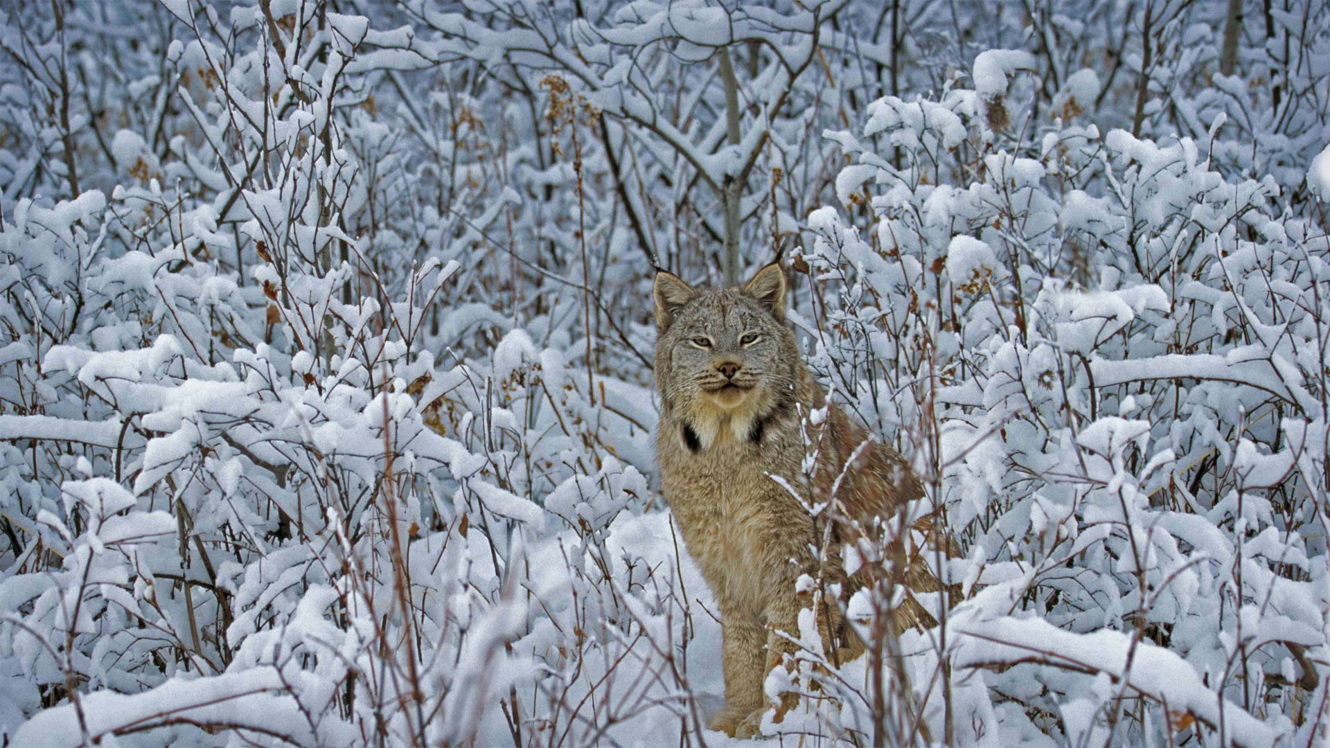 Wildcat in a winter wonderland © Alan and Sandy Carey/Minden Pictures