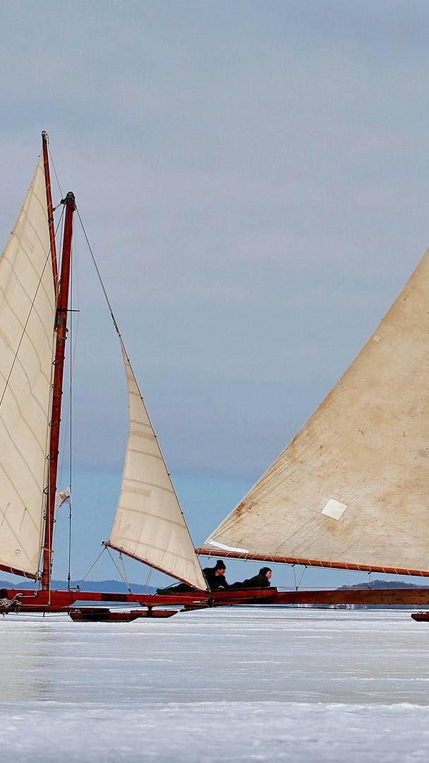 New York"s Hudson River, winter of 2014: Temperatures were so cold for so long that sailors were able to take their antique wooden ice yachts out for a sail on this 20-mile stretch of thick ice. It was a rare sight for the area. Global warming meant that the Hudson River hadn"t frozen thick enough for safe iceboating in years.