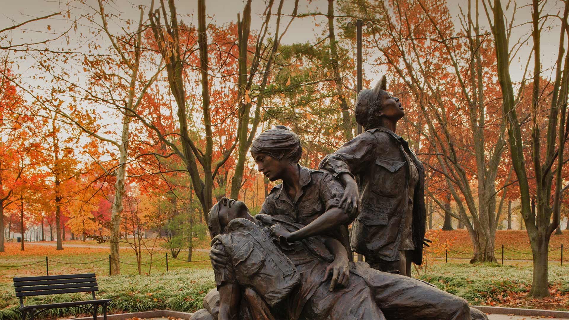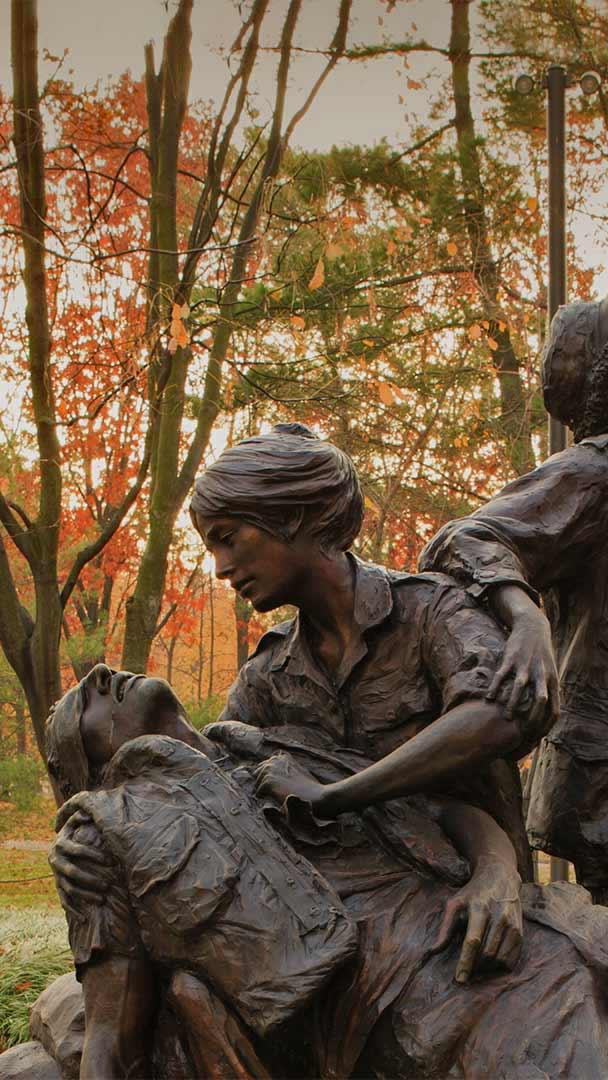 On the National Mall in Washington, DC, just north of the Reflecting Pool, is a sculpture honoring the women who served during the Vietnam War. The military efforts of women, less visible than those of men, are commemorated by the Vietnam Women"s Memorial, featured today on Veterans Day. While Memorial Day honors those who died during military service, Veterans Day recognizes the service of all veterans, whether or not they served during a war. Veterans Day, a federal holiday, was originally known as Armistice Day and coincides with the anniversary of the end of World War I. For this reason, other countries also observe today as a holiday.